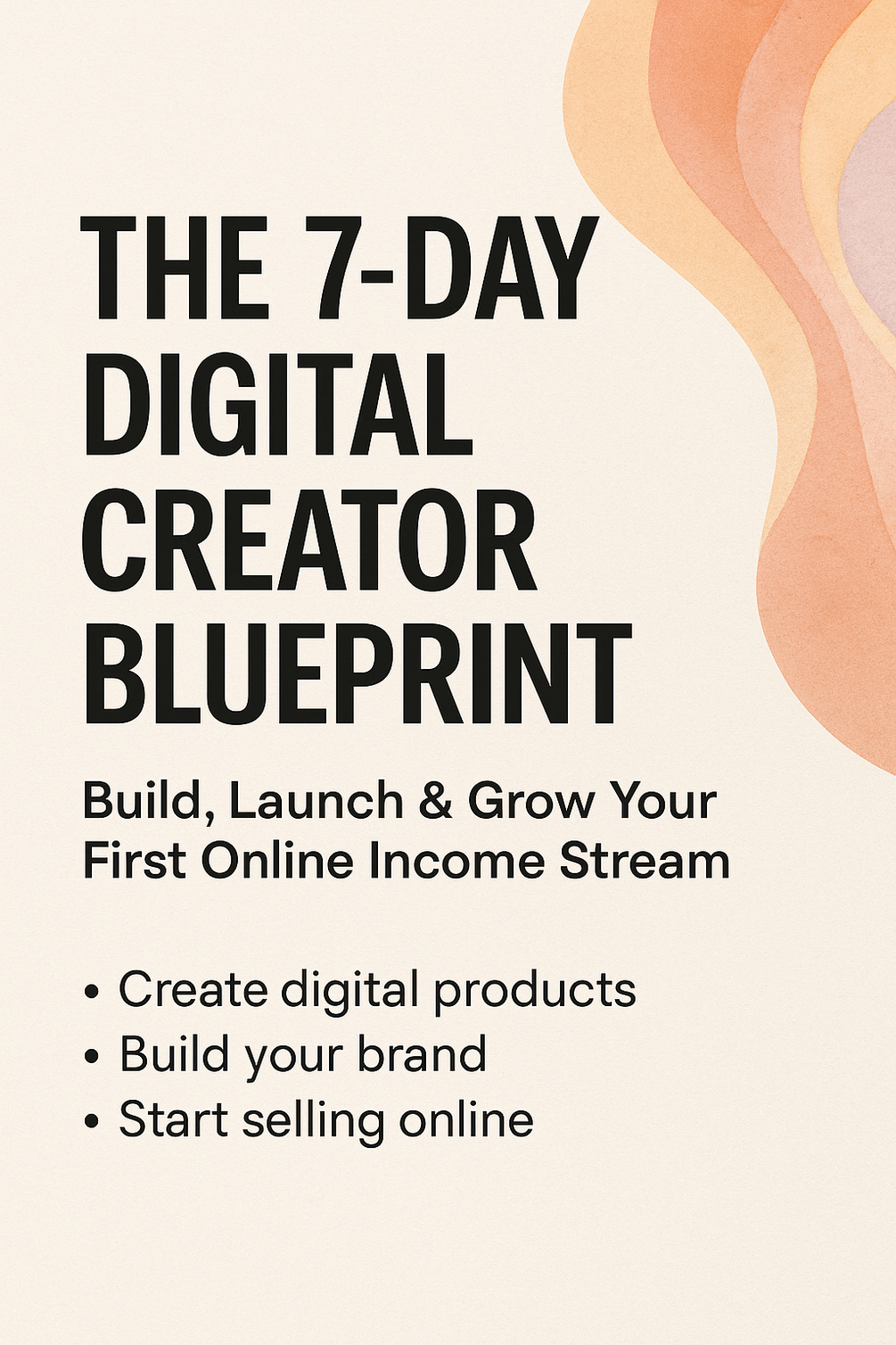 The 7-Day Digital Creator Blueprint is a complete step-by-step guide that teaches beginners how to start, launch, and grow their first digital product business in just one week. Inside, you’ll learn how to create templates, guides, PDFs, and simple digital services — then package them professionally, automate delivery, and attract your first customers using Instagram, TikTok, and Gumroad. Across 50+ pages, you’ll discover how to build a clean brand identity, create passive income products, structure bundles and upsells, deliver work like a pro, gather social proof, and scale into stable monthly income through subscriptions and retainers. This book transforms you from unsure beginner into confident digital creator — with a long-term roadmap that keeps your business growing long after the 7 days are over.